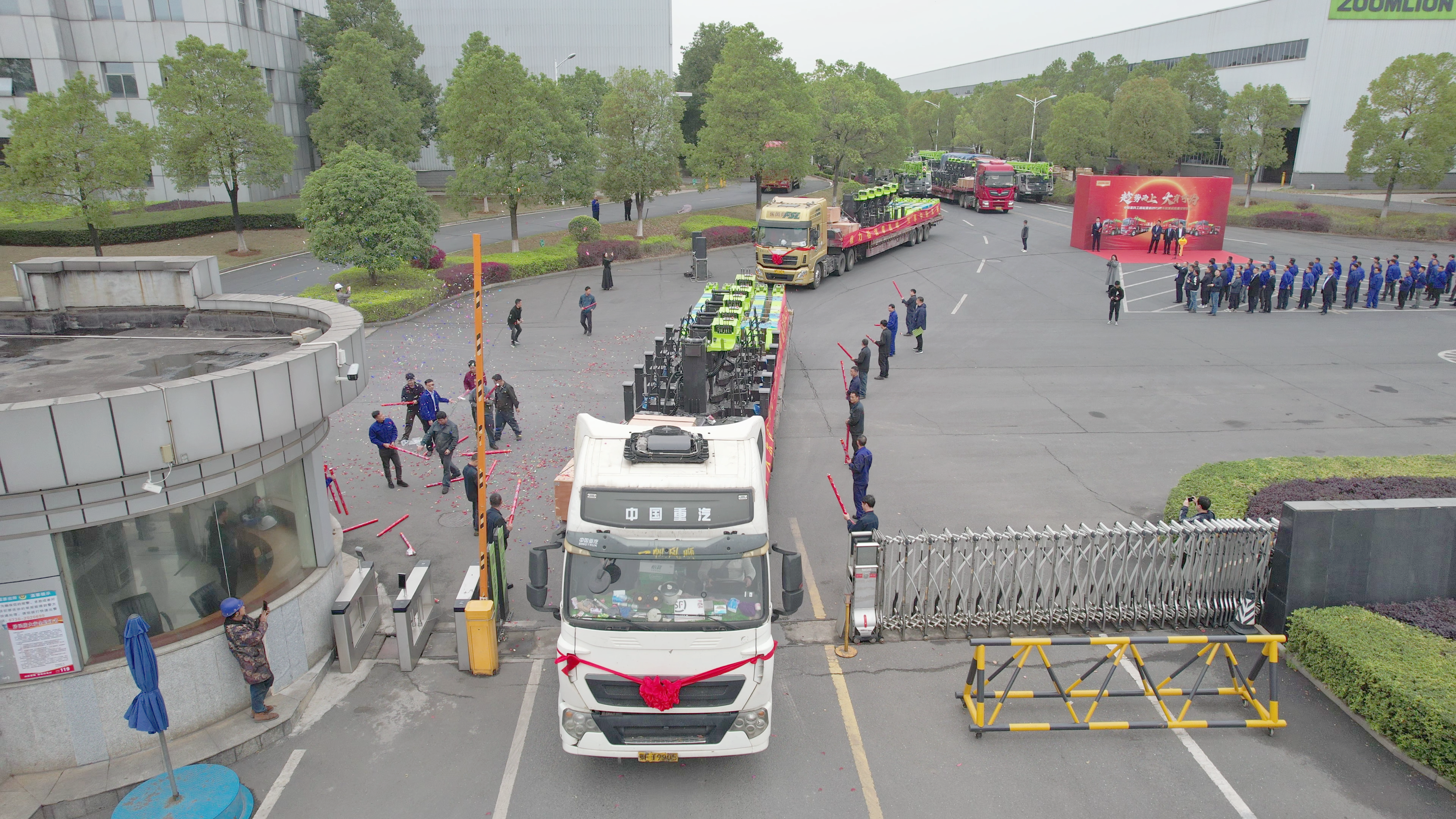 3月12日上午,在中聯(lián)重科常德漢壽園區(qū),一輛輛載著隨車吊產(chǎn)品的貨車排成長龍,隨著中聯(lián)重科工起公司總經(jīng)理助理王立明的一聲令下,這些隨車吊產(chǎn)品在禮炮與掌聲中緩緩駛出了漢壽基地的大門,奔向了無限廣闊的市場,為各地建設(shè)提供新助力。