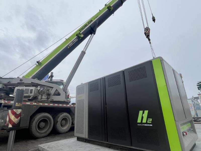 ▲中聯(lián)重科氫氣液驅(qū)壓縮機(jī)在安陽項(xiàng)目現(xiàn)場(chǎng)