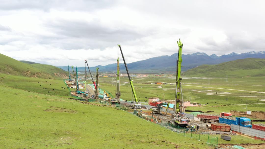 △中聯(lián)重科旋挖鉆機群、起重機等設備在川西高原助建理塘縣格者村特大橋