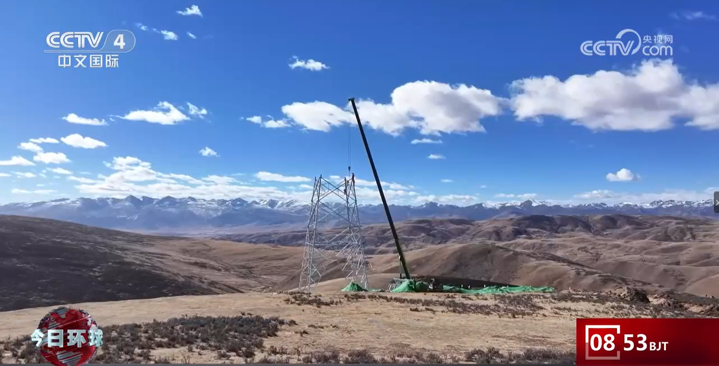 △中聯(lián)重科起重機助建全球海拔**高的特高壓輸電鐵塔(圖片來源:央視網(wǎng))