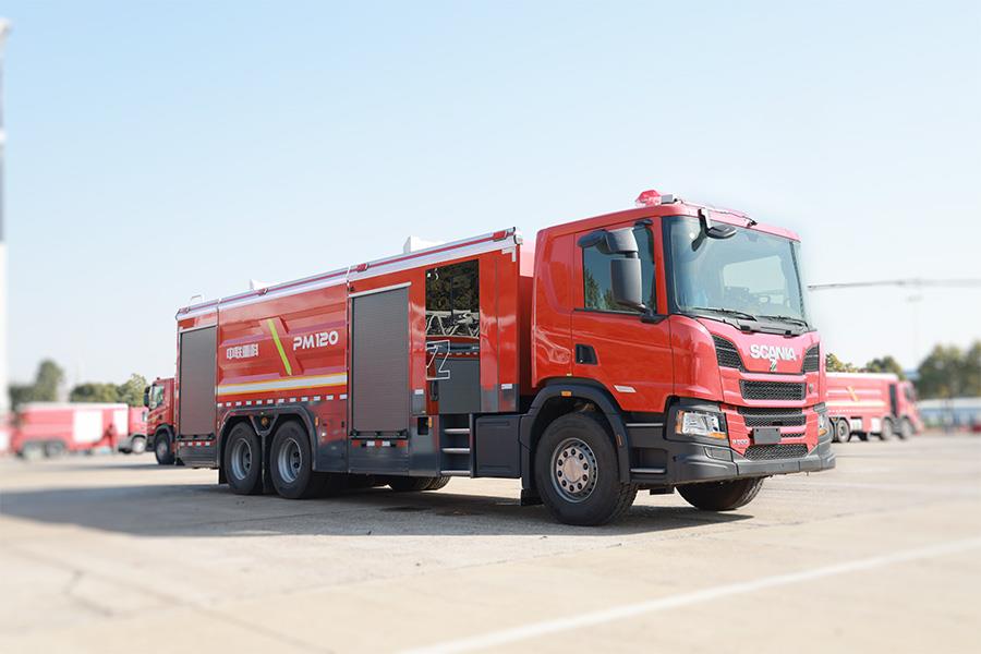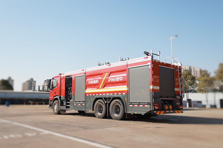中聯(lián)牌PM120型泡沫/水罐消防車,整車機動靈活,裝備常規(guī)型B類泡沫系統(tǒng),適合撲救工業(yè)與民用建筑A類火災,亦可撲救石化,煤化,油庫等B類火災;全鋁合金車身,自重輕,強度高,防腐蝕性能好,可隨車攜帶多種搶險救援器材,是城市應急救援消防隊與企業(yè)專職消防單位滅火救援的重要裝備。