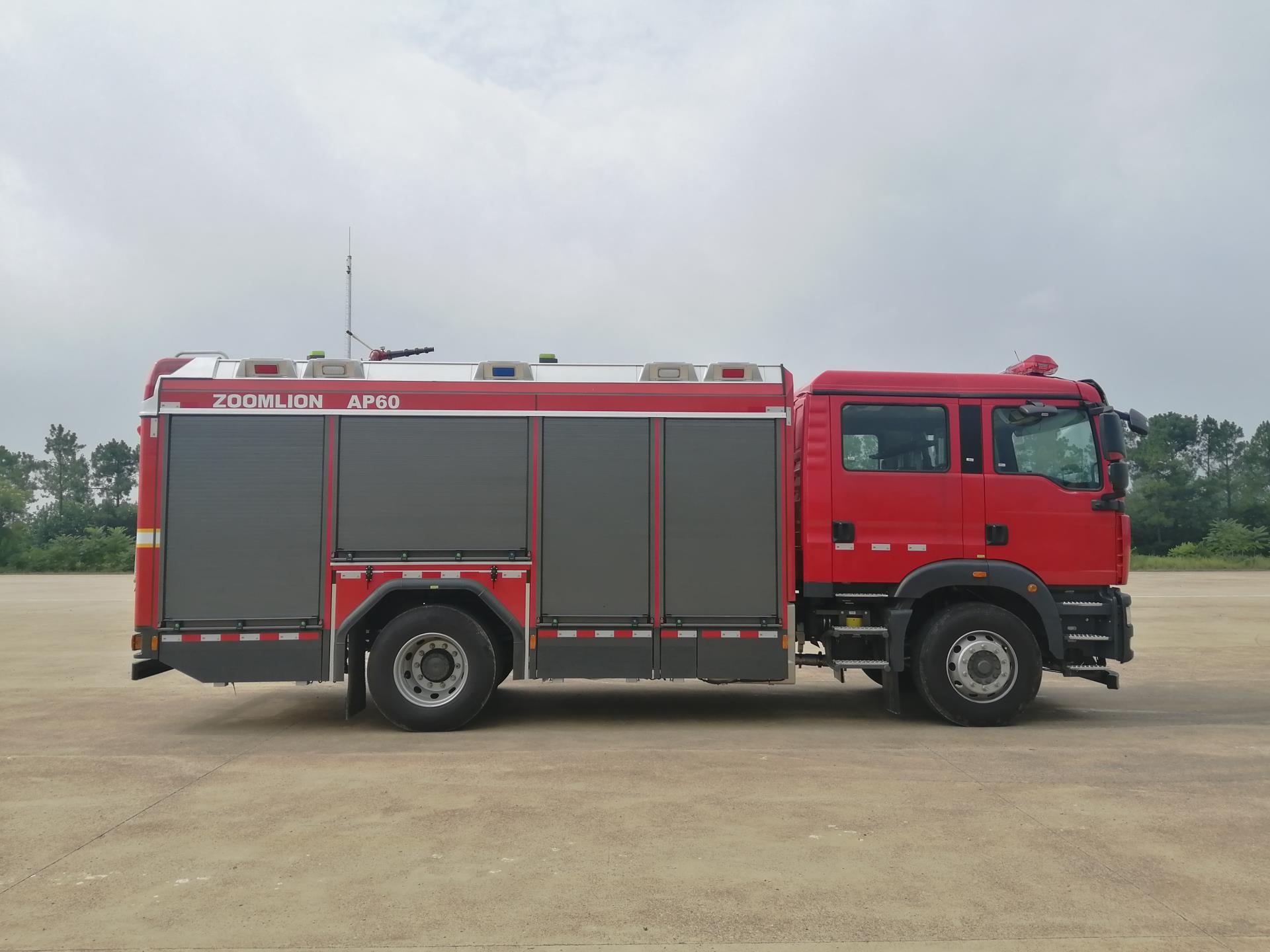 中聯(lián)牌AP60城市主戰(zhàn)消防車選用中國(guó)重汽汕德卡ZZ5206N471GF5型二類底盤、裝備進(jìn)口全自動(dòng)壓縮空氣A類泡沫系統(tǒng)改裝而成。整車外形美觀、設(shè)計(jì)科學(xué)、匹配合理。