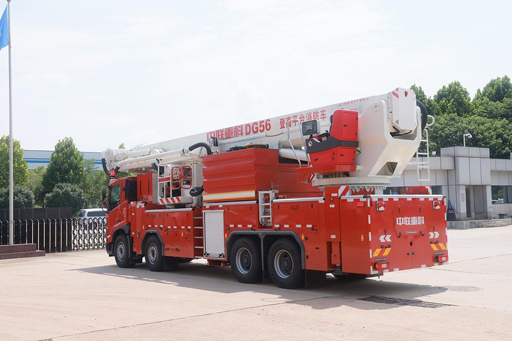中聯(lián)牌DG56C6型登高平臺消防車,采用5+2雙伸縮臂結構,配置大流量水力系統(tǒng)、智能控制系統(tǒng)及大功率底盤系統(tǒng),整車滅火能力及高空救援能力強悍,動作平穩(wěn)快捷,操作簡便。適用于城鎮(zhèn)、港口、工礦企業(yè)高層建筑以及石油、化工、油罐、倉庫等大型建筑滅火及救援。