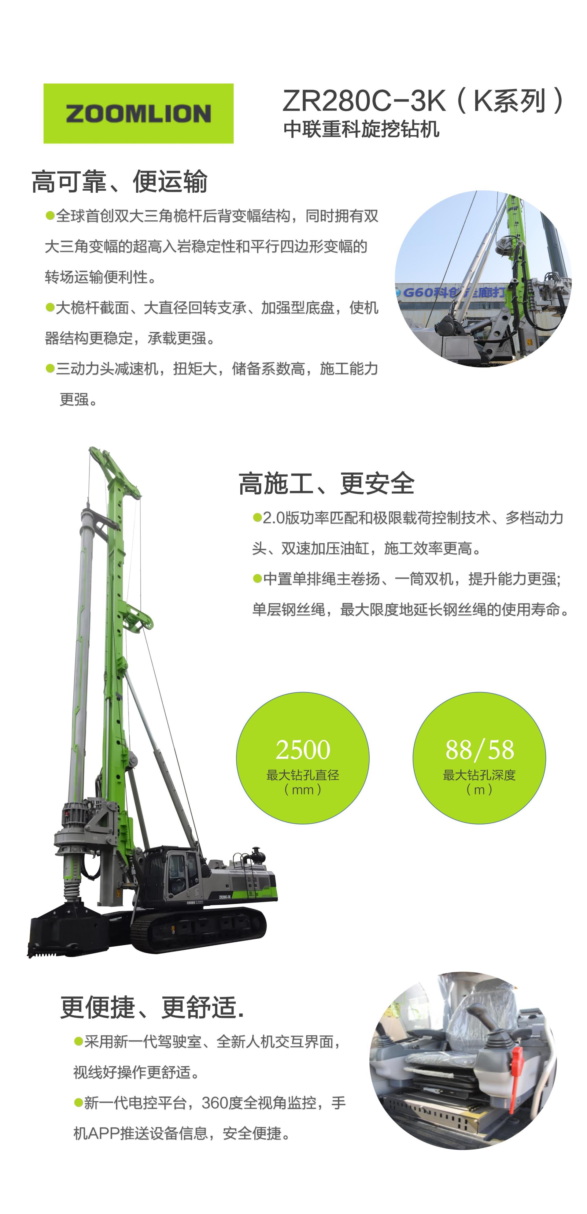 ZR280C-3K?旋挖鉆機(jī)性能參數(shù)表 |